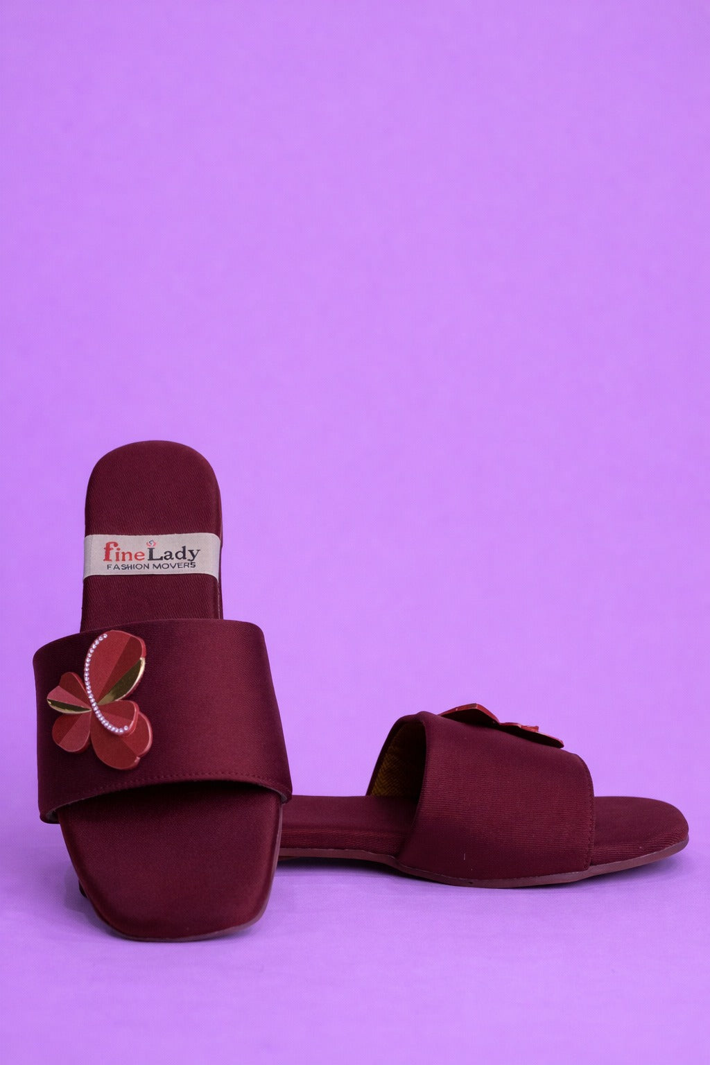 Upgrade your everyday style with these elegant Maroon Butterfly Slide Slippers. Designed for comfort and fashion, these lightweight flats are perfect for daily wear, indoor use, and casual outings. The stylish butterfly embellishment adds a classy and feminine touch, making them a must-have for every modern woman.
